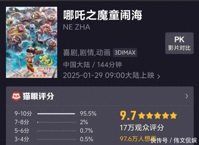 该片在猫眼的评分为9.7分,可见,口碑挺硬打的。导演饺子直言:观众的期待很高,想要达到这种期待,机会只有一次,绝对不能辜负!短短的一句话,很有信心,