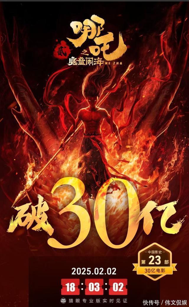 《哪吒2》大年初一上映,年初五总票房已经突破30亿元,该片的收益碾压去年春节档冠军《热辣滚烫》。